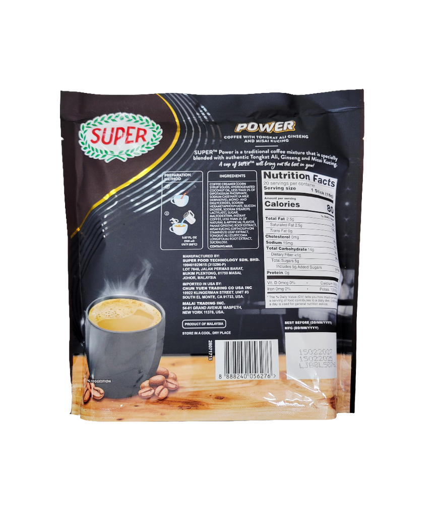 Instant coffee with coffee, creamer, sugar, panax ginseng, tongkat ali