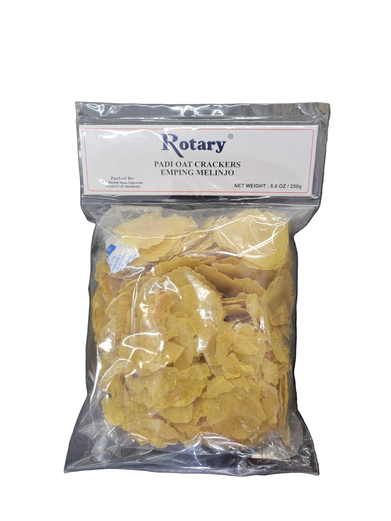 Traditional Indonesian cracker made from flattened melinjo nuts. To be deep fried before eating.